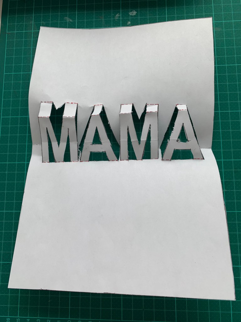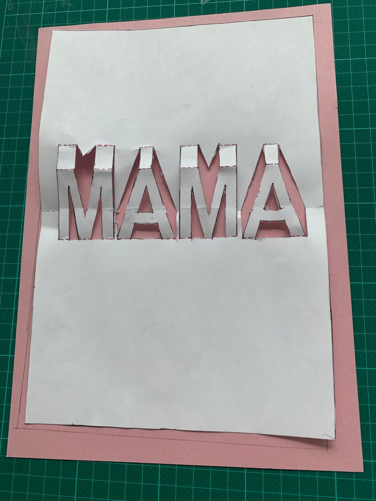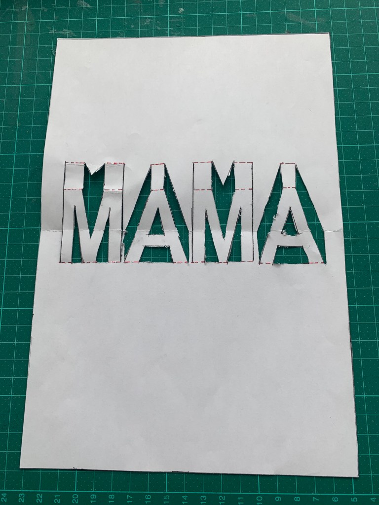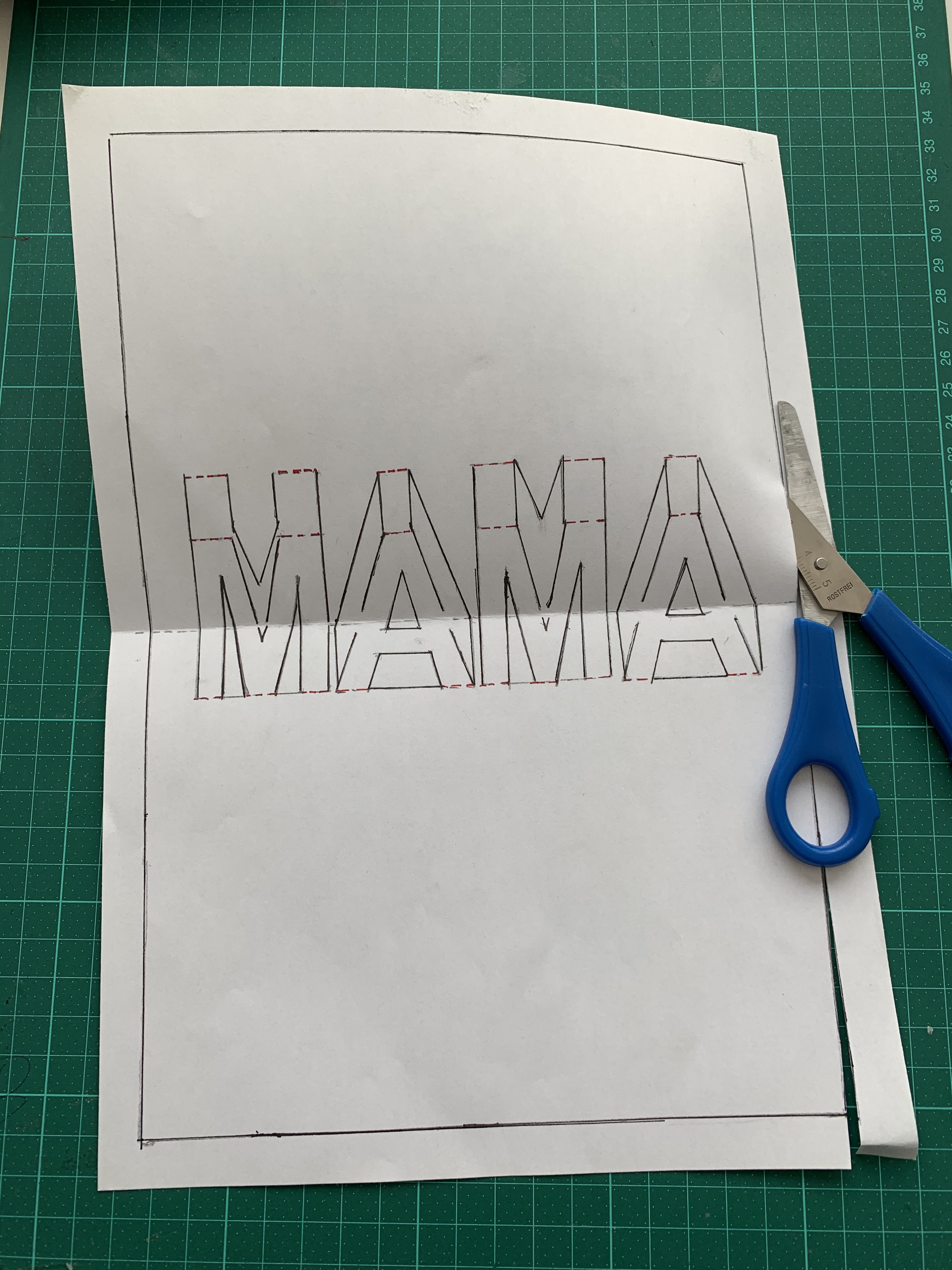 Nem jetzt das bunte Blatt Papier und lege das Blatt wo Mama drauf steht und umrande es.